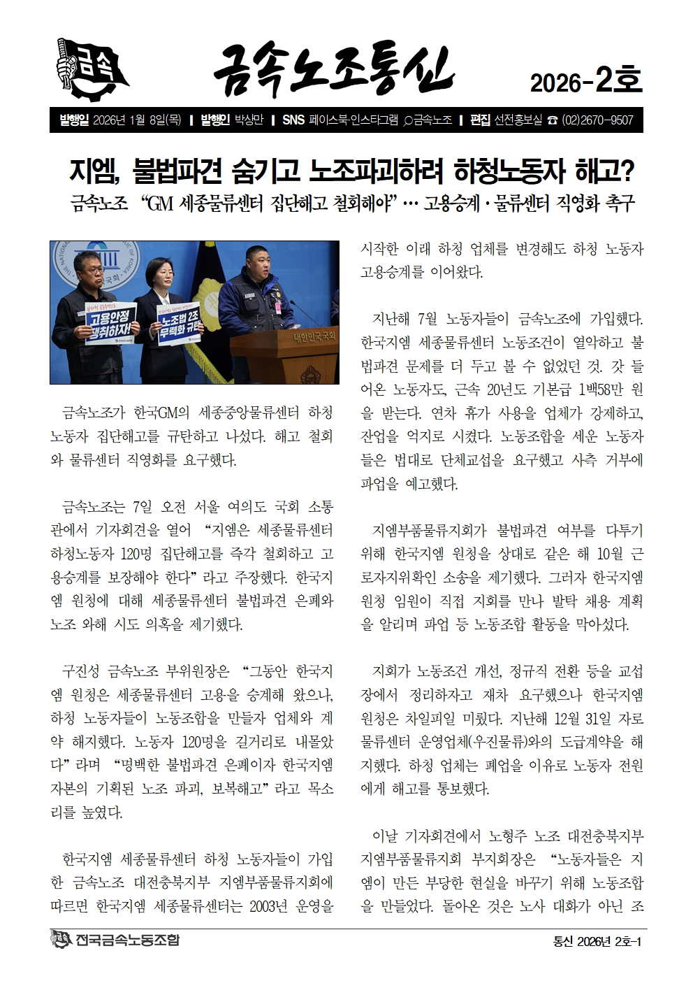 금속노조통신 2026-1호