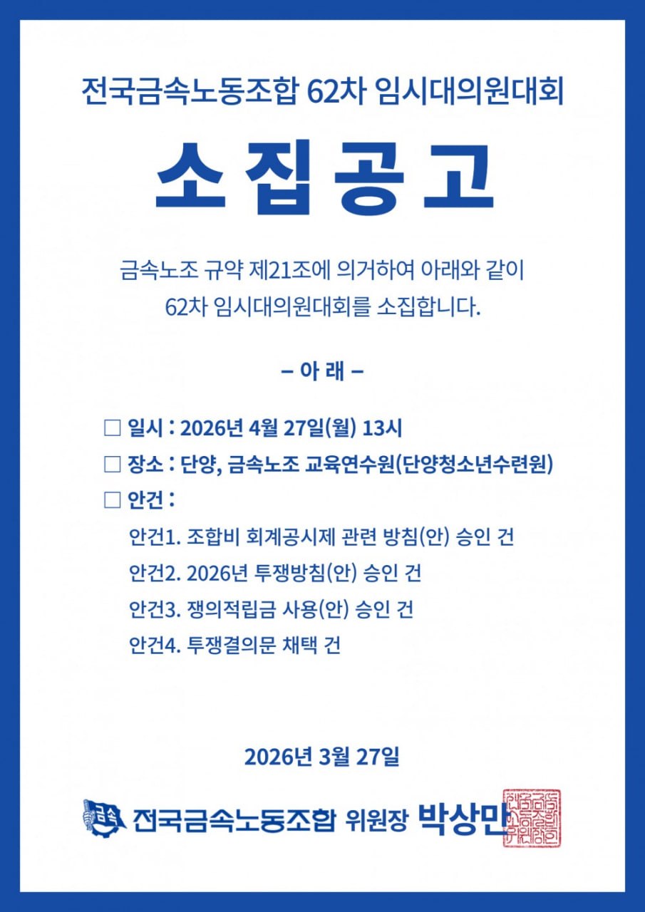 금속노조 62차 임시대의원대회